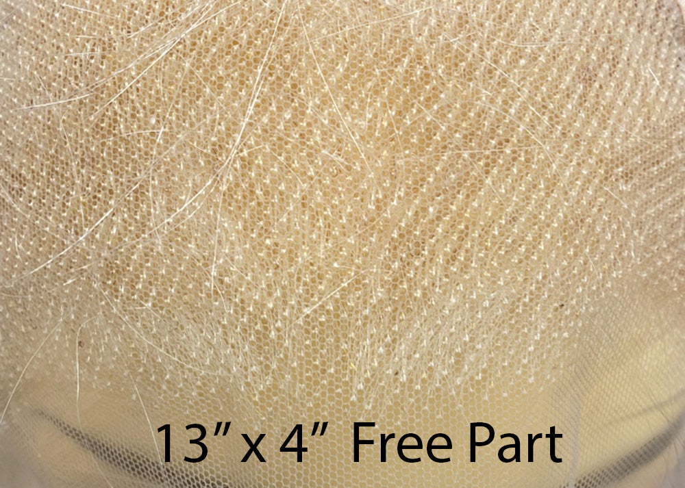 100% unprocessed human hair wig bleached to color 613. Available as a 13"x4" T Part lace front with ear to ear hand tied lace or as a 13"x4" free part lace front with ear to ear hand tied lace. HD lace for a natural look. Includes pre-plucked baby hair.