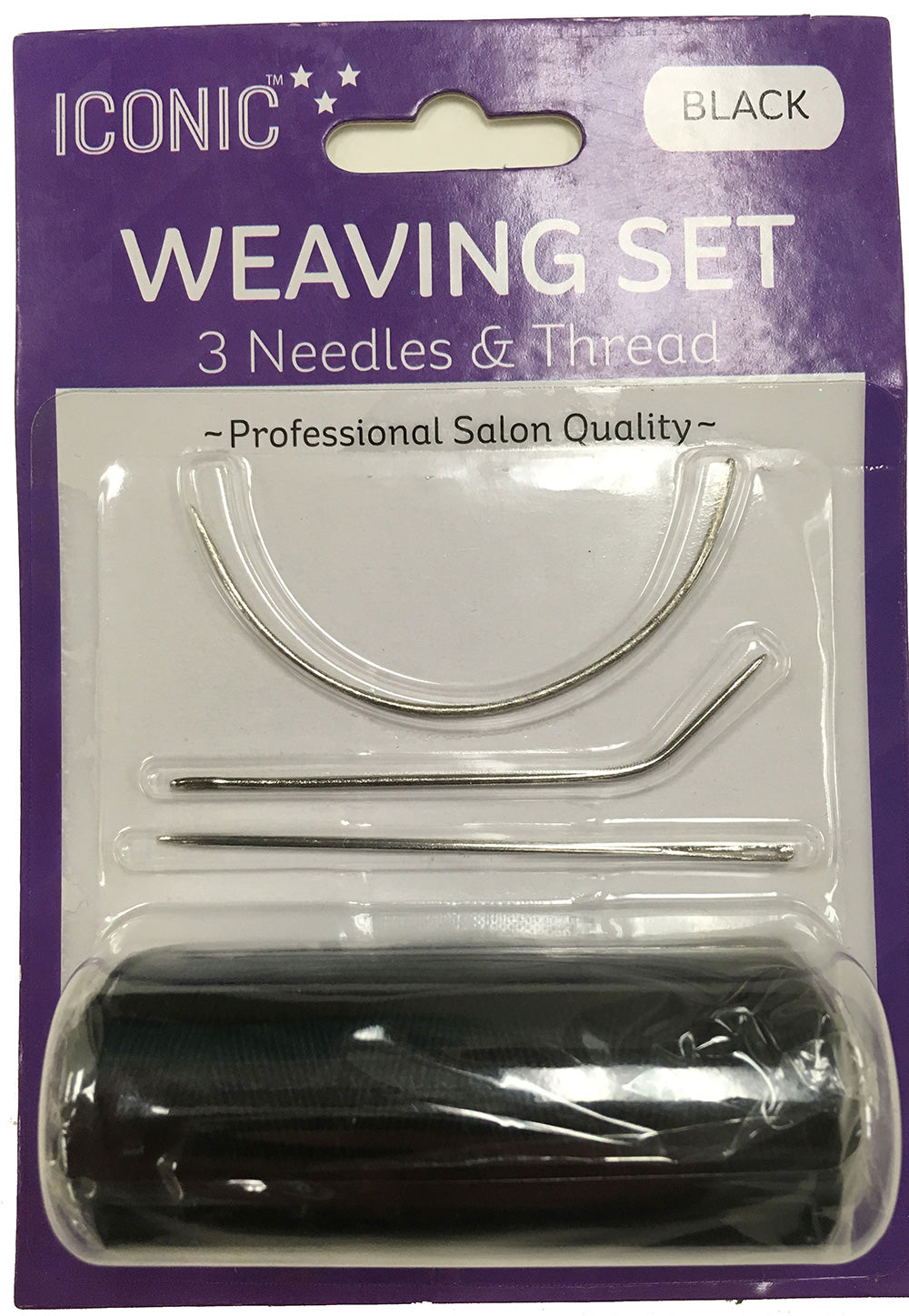 Three quality needles and black thread.